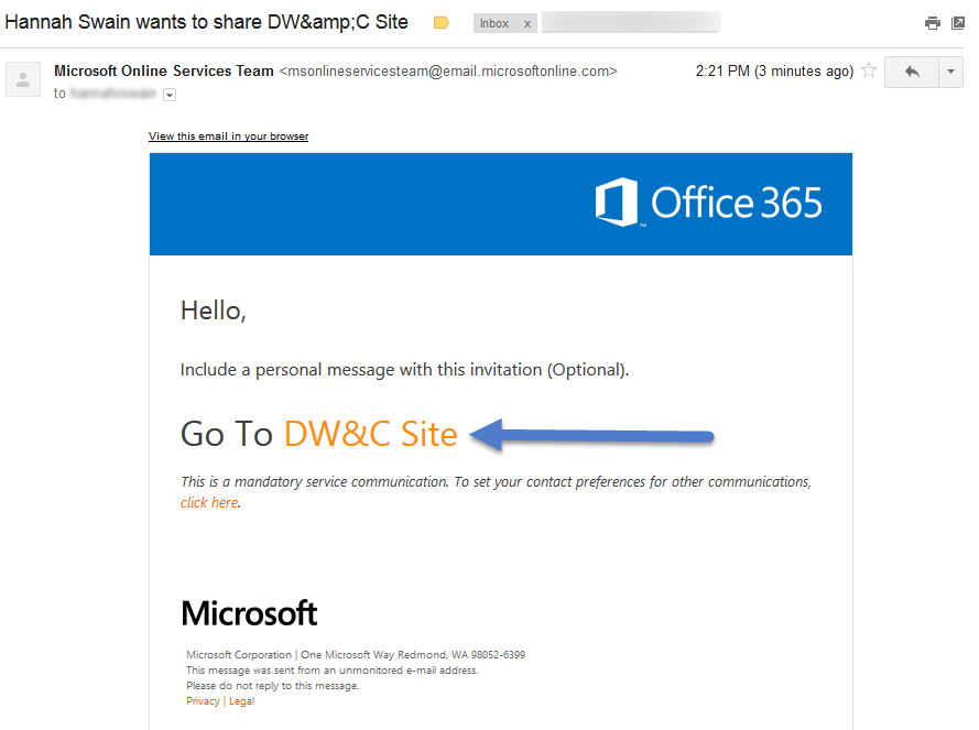 - Check your email; you should have an invitation to visit the site. Click on the sharing link to start the process.