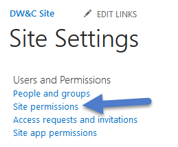 - Go to Site Settings and choose “Site permissions” with a user which has enough permissions to do so